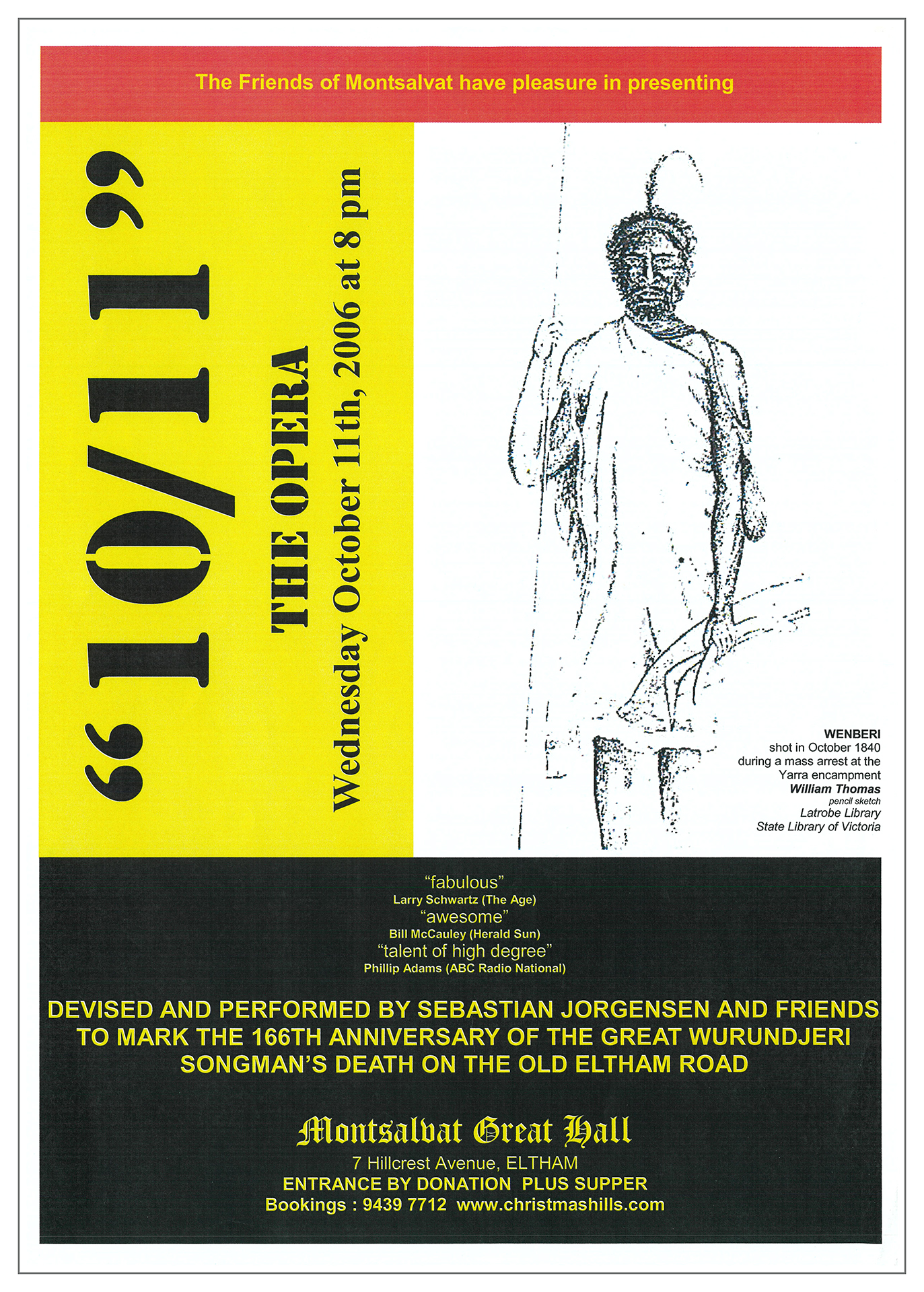 The famous Aboriginal Australian award-winning film star and others from his group stayed between Montsalvat and the Christmas Hills Farm, hosted by classical guitarist Sebastian Jorgensen and singer Sally Grice, with their two children, Rhiannon and Saxon, in the week of preparations for the event. They exchanged stories and shared their interests in music and song. David Gulpilil asked Montsalvat to continue cultural exchanges with his community in northern Australia and invited Sebastian, Sally and others to visit him in Ramingining.