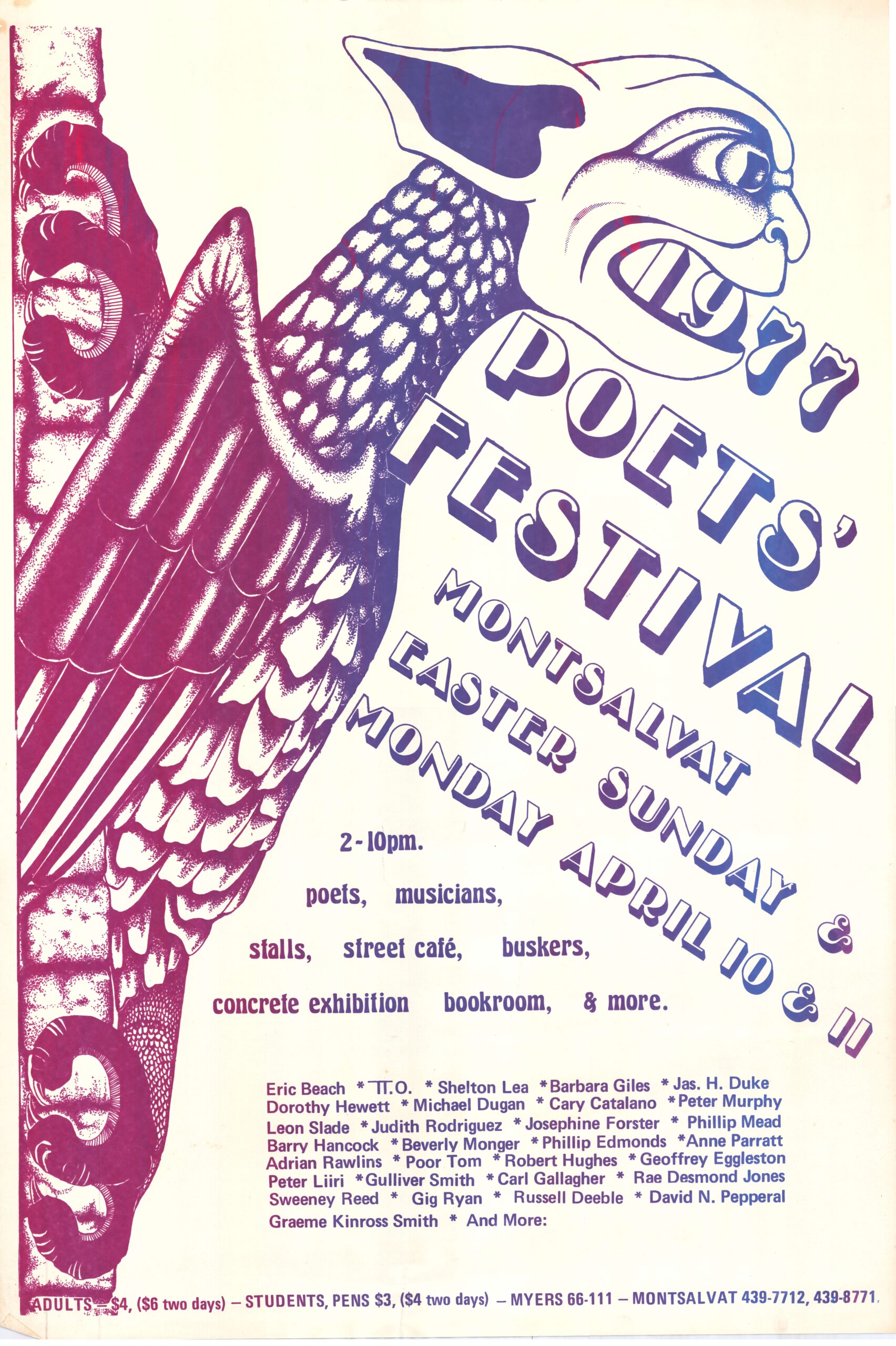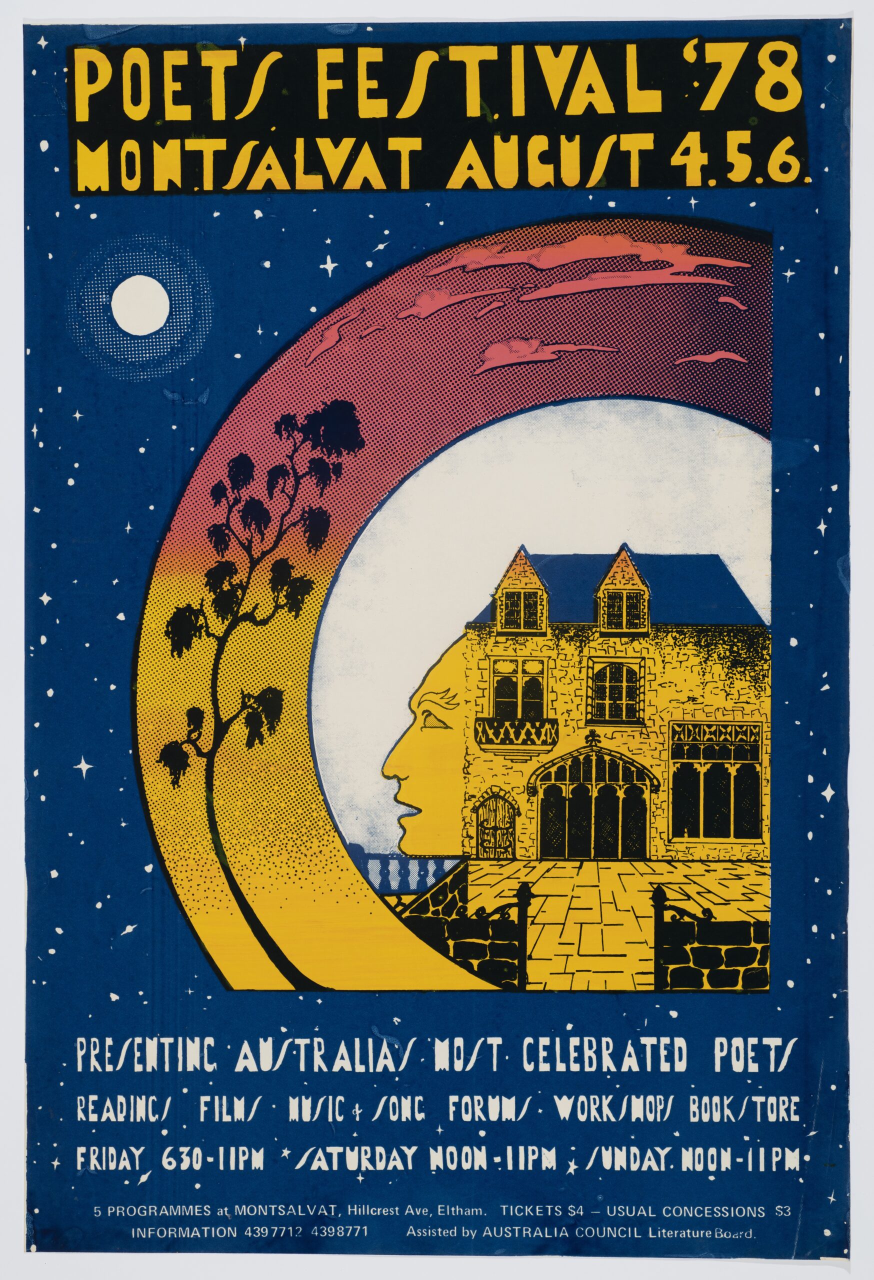 The Poets’ Festival founded at Montsalvat in 1977 was a nationally significant gathering of poets from all over Australia, supported by the Australia Council Literature Board and by Arts Victoria. From 1977 to 1979, Fabrizio Calafuri was artistic director, program manager and publicist. Montsalvat poet-in-residence Geoffrey Eggleston provided advice for inviting writers. Sebastian Jorgensen advised the musical components and Sigmund Jorgensen was the general manager.