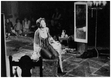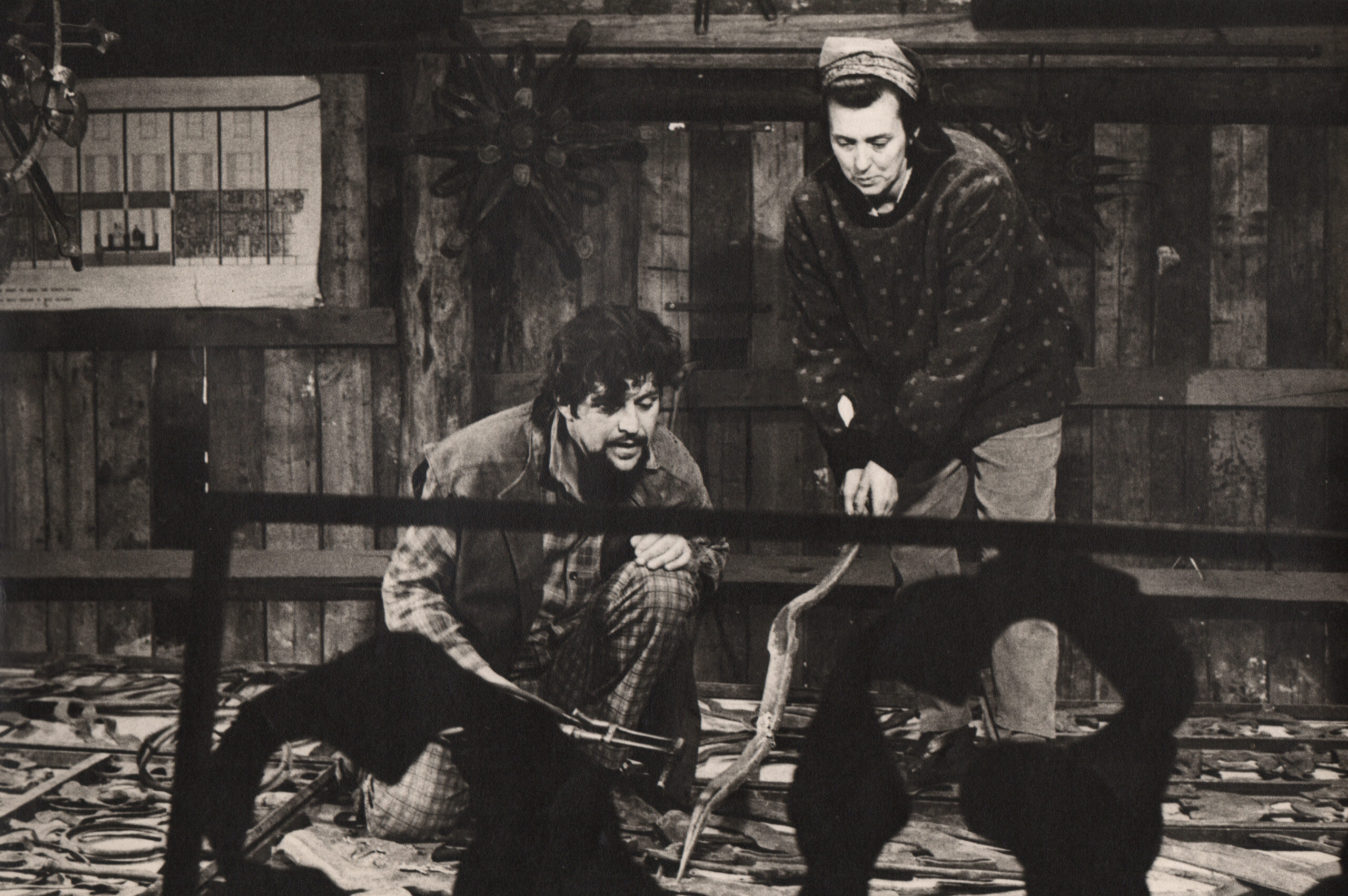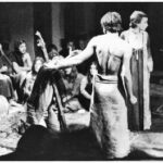These partially restored archival photos from that 1974 production in the Great Hall show actor Chris McQuade in the role of Oedipus’s mother Jocasta, and Montsalvat’s Marcus Skipper joining as Oedipus.