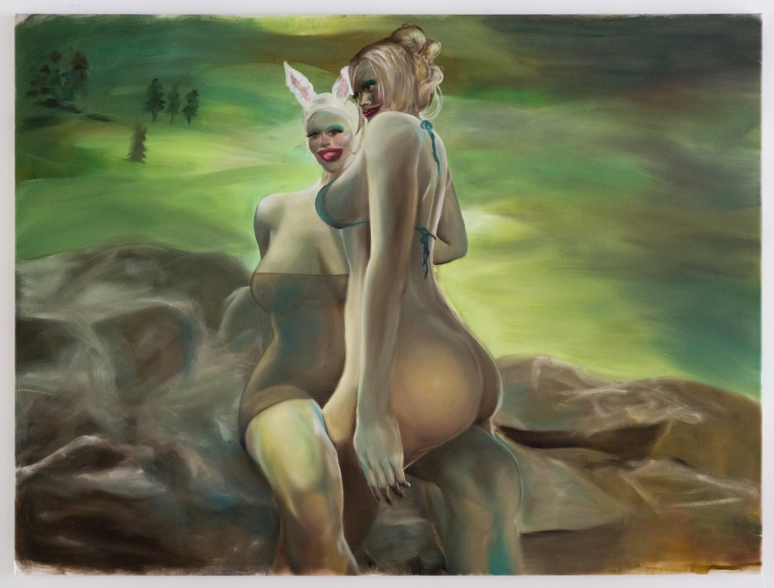 Each artist engages memory through a unique lens: Anna Devine’s sculptural and print based works use found materials and process-driven methodologies to navigate the complexities of disability, embodiment, and the mind-body threshold. Kitty Chrystal’s airbrush and oil paintings insert queer bodies into Australian gothic landscapes, investigating embodiment, trauma, and the politics of visibility. Gala Jane’s multimedia installations incorporate text and video to address feminist histories and the digital archive, asking how memory survives, repeats, or is distorted. Virginia Guest’s oil paintings draw from old master traditions and abstraction to probe the colonial entanglements of agriculture and land.