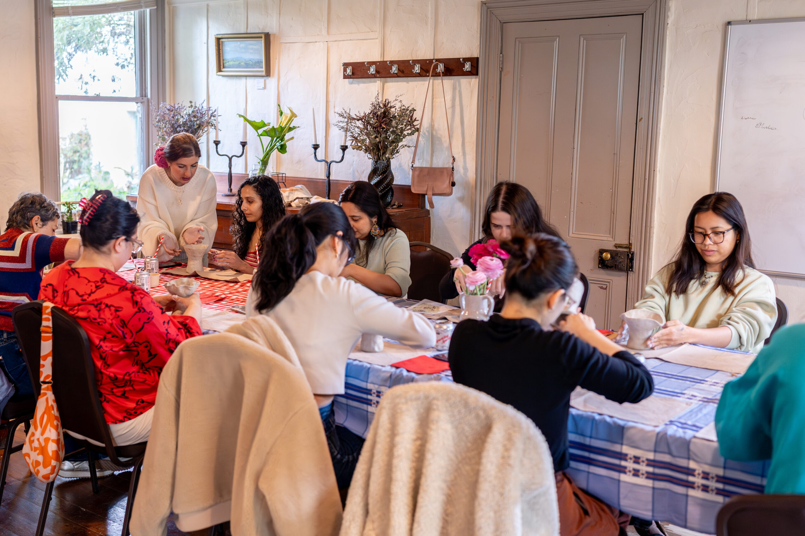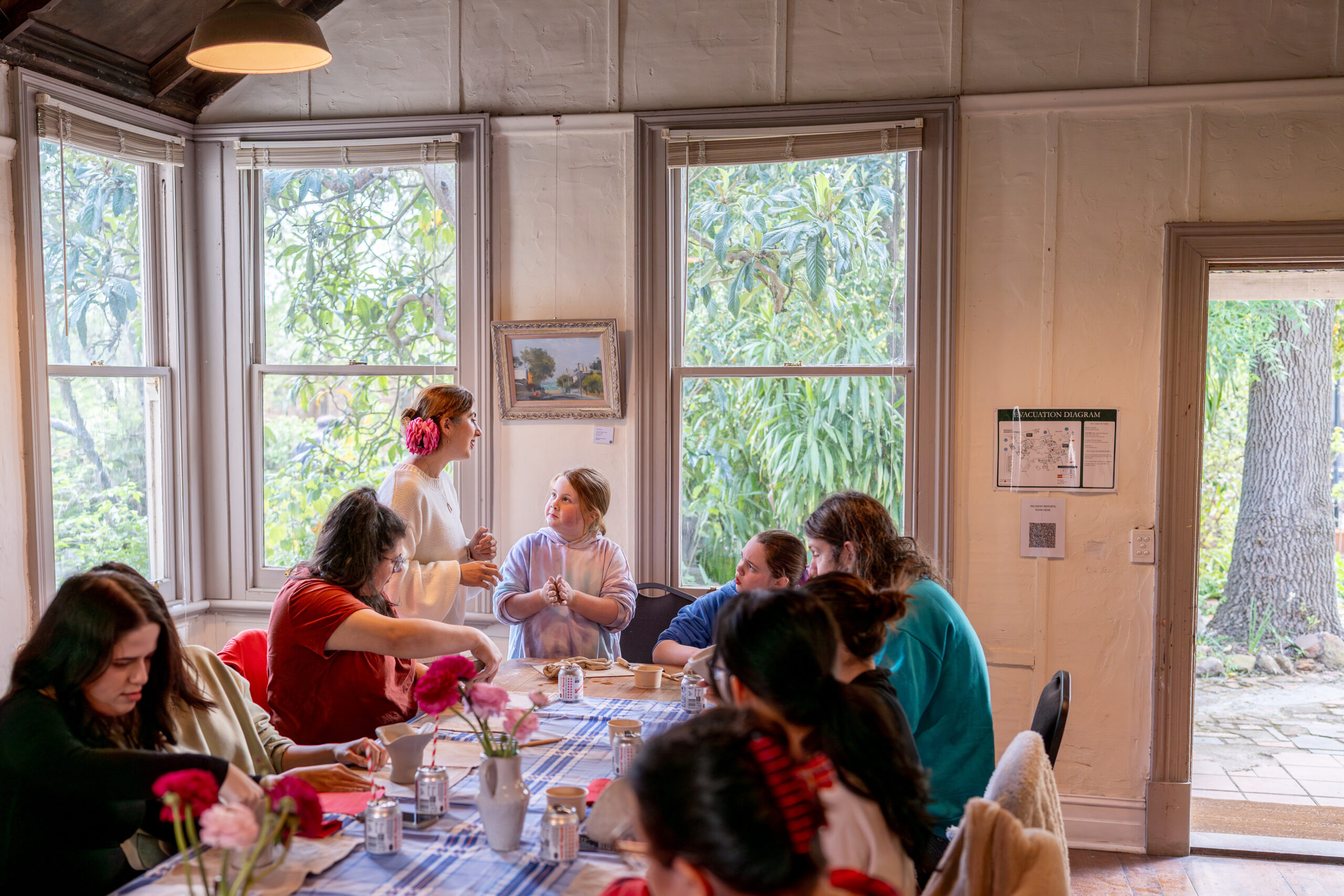 This large room (approx. 50 sqM) has timber floorboards and looks across the cottage garden towards the Residents Gallery and Café courtyard.This space is best suited for workshops/masterclasses and events or meetings.